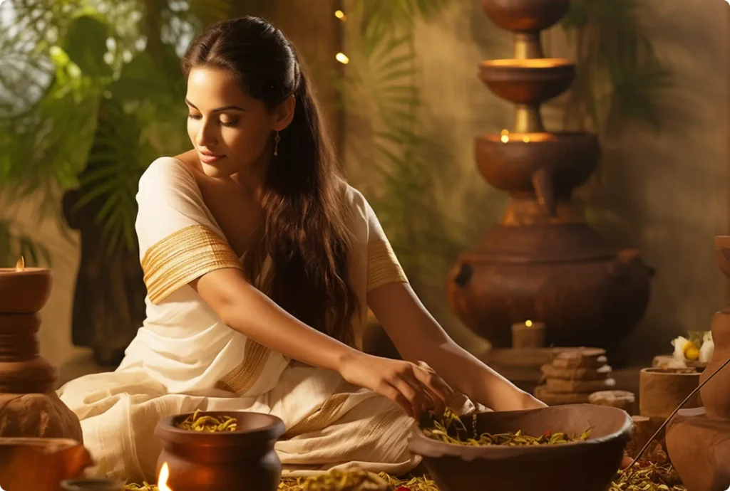 Abhyanga (oil massage), herbal steam therapy, and a personalized diet improve fertility and promote emotional well-being.